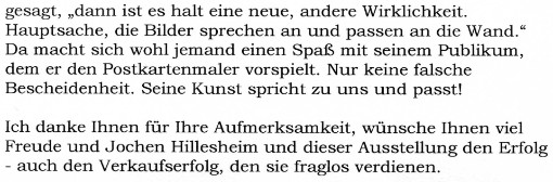 Die Laudatio zu meiner Ausstellung in Freiamt von Dr. Jochen Becker :